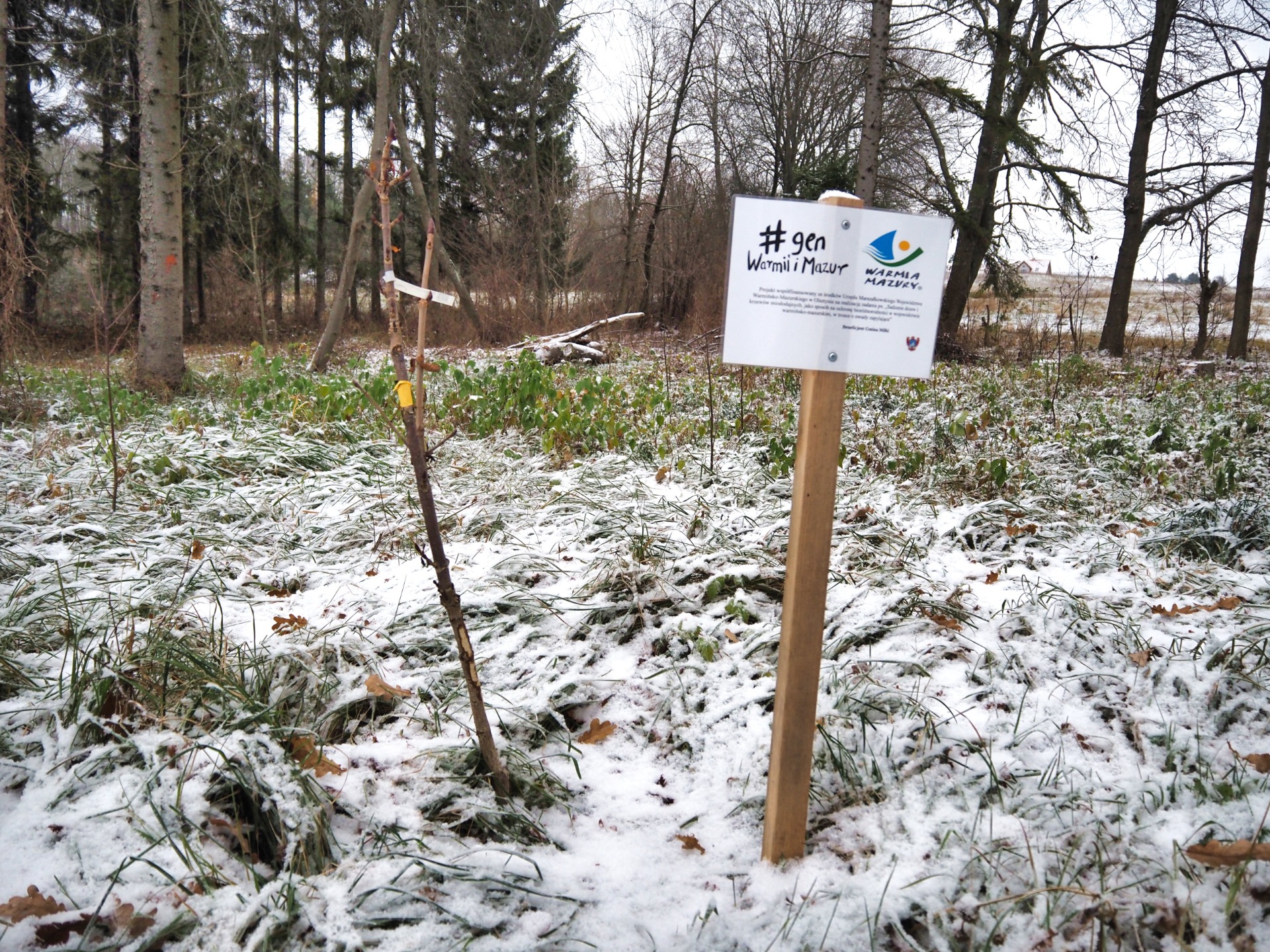 W ramach umowy nr OW.0022.37.2025 z Województwem Warmińsko-Mazurskim na zadanie polegające na zakupie i wykonaniu nasadzeń drzew z gatunku: lipa, klon pospolity, klon jawor, jarząb pospolity, kasztanowiec zwyczajny, śliwa wiśniowa czerwonolistna, głóg – w ilości łącznie 127 szt., oraz krzewów: pęcherznica kalinolistna (żółtolistna), pęcherznica kalinolistna (czerwonolistna), tawuła japońska, krzewuszka, berberys, żylistek szorstki, ognik szkarłatny – w ilości 167 szt., wykonano nasadzenia na terenach gminnych.